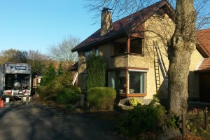 Aan de Hearewei bij Minnertsga worden de spouwmuren geïsoleerd van een particuliere woning.