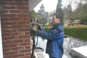 In opdracht van bouwbedrijf van Marrum wordt spouwisolatie aan een woning aan de Mr.P.J.Troelstraweg in Leeuwarden aangebracht.