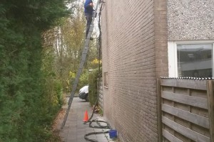 In opdracht van bouwbedrijf van Marrum wordt aan de Obe van Postmawei te Leeuwarden bodemisolatie en spouwisolatie aan een woning aangebracht.