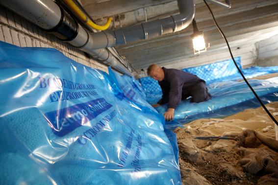 Als er een bereikbare kruipruimte onder de woning is, kan deze uitstekend geïsoleerd worden. Hiervoor wordt het Bodemhygrolatiesysteem® (isolatiematras) gebruikt.